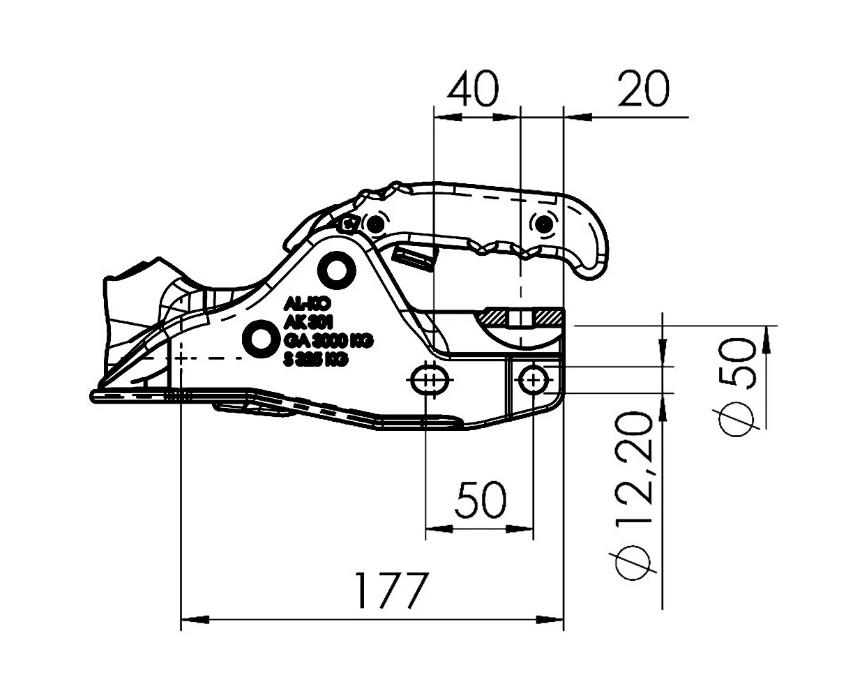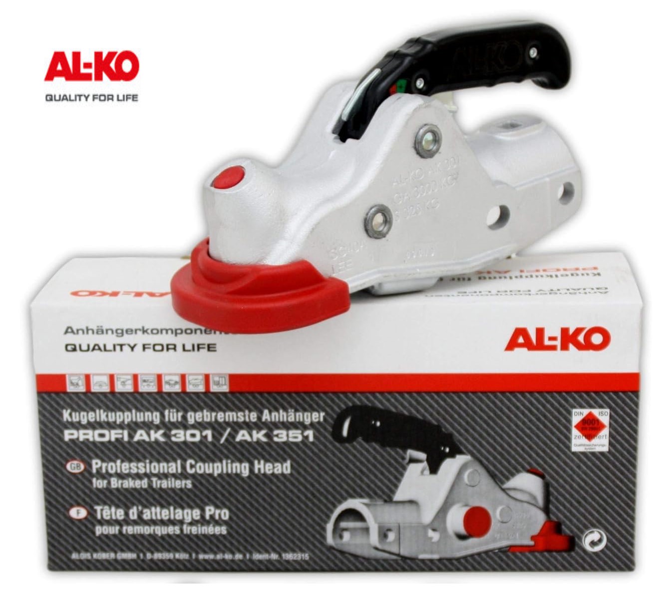 AL-KO:n laadukas valurautakuulakytkin 3000kg. 50/45mm pyöreälle putkelle, työntöjarruihin.